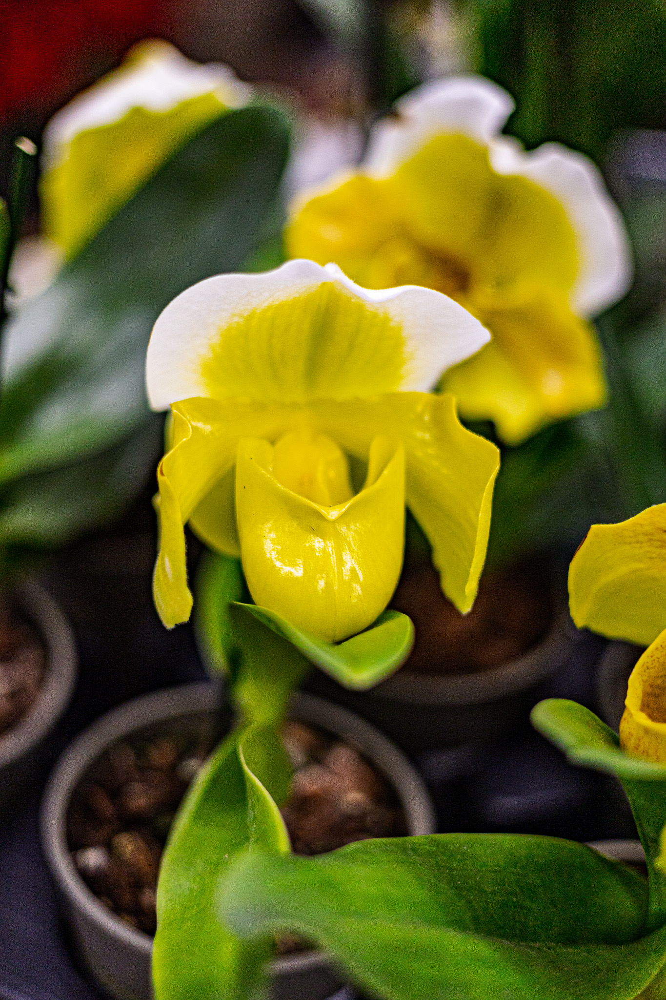 Znany jako „sabotka” ze względu na charakterystyczny, kieszonkowaty kształt kwiatu. To storczyk o wyjątkowej, niemal rzeźbiarskiej formie.